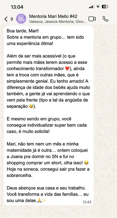 Para mães que buscam acompanhamento próximo com troca de experiências